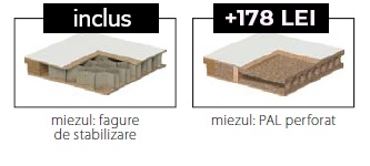 – miezul foii de usa este FAGURE DE STABILIZARE (structura usoara) sau PAL PERFORAT (cost suplimentar). In cazul modelelor cu sticla mata calita de 8 mm grosime, sticla face parte din constructia canatului.