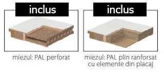 – miezul foii de usa este PAL PLIN ranforsat cu elemente din placaj (cost suplimentar). Modelul 2.2 este disponibil si in varianta cu oglinda pe una sau pe ambele fete; modelul cu oglinda pe o parte are panou plin pe partea cealalta.