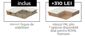 – miezul foii de usa este FAGURE DE STABILIZARE (structura usoara) sau PAL PLIN- doar pentru Royal Premium (cost suplimentar)